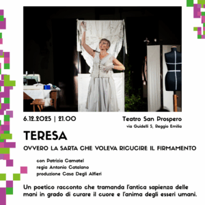 Un racconto poetico che intreccia amore, mestieri antichi e il delicato lavoro delle mani Il 6 dicembre 2025 alle ore 21.00, il palco del Teatro San Prospero si trasformerà in una piccola bottega…